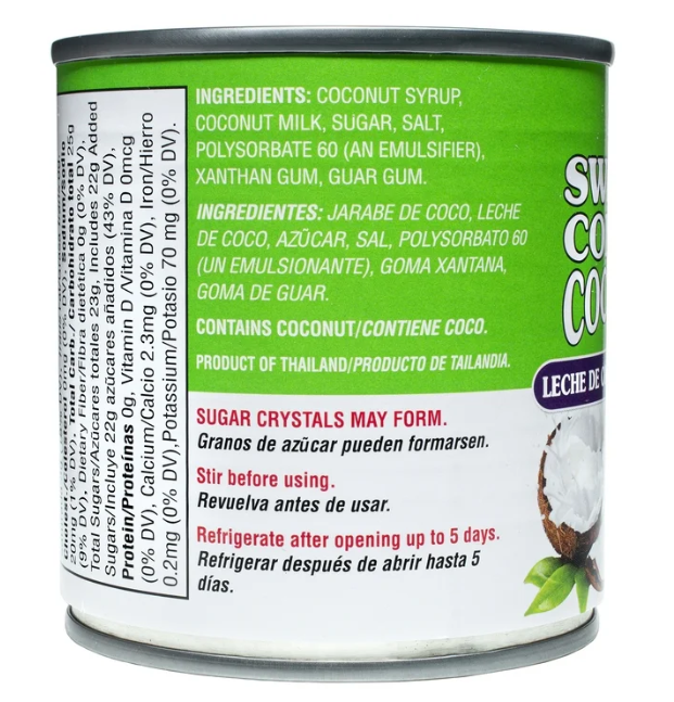 pure cane, sugar, filtered water, coconut cream, zantham gum