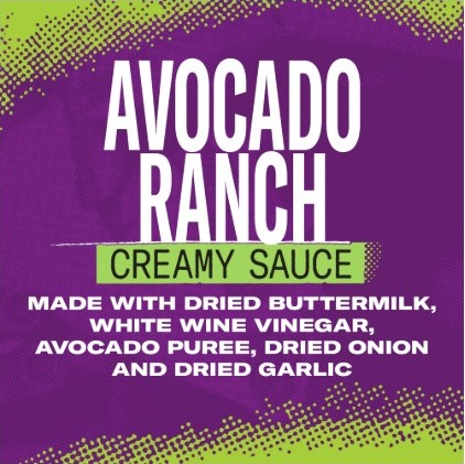 Live más at home with our Taco Bell Creamy Avocado Ranch Sauce. Taco Bell makes mealtime more craveable with our ranch sauce that adds a creamy, zesty punch of flavor to all your favorite Mexican foods. Our sauce is made with dried buttermilk, white wine vinegar, avocado purée, dried onion and dried garlic. Squeeze some creamy, spicy flavor on your tacos, burritos, fajitas, salads, sandwich wraps, quesadillas, enchiladas and more. The convenient squeeze bottle lets you pour the perfect amount of Creamy Avocado Ranch Sauce every time. Shake each 12-ounce shelf-stable bottle of Taco Bell sauce before using and refrigerate after opening. Live more fervently, more authentically, more joyfully with Taco Bell.