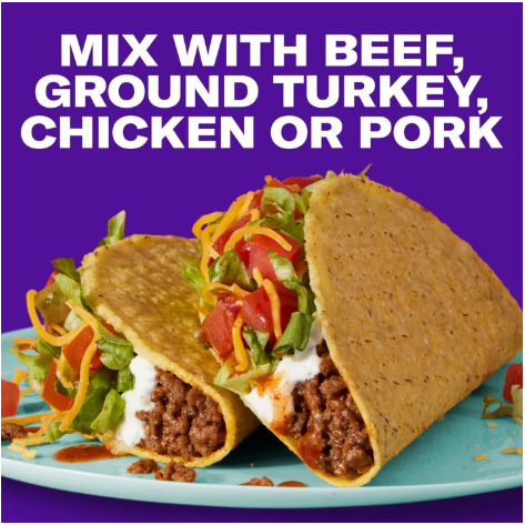 Live más at home with our Taco Bell Mild Taco Seasoning Mix. Taco Bell makes mealtime more craveable with Mexican-style flavors that elevate beef, chicken and pork. Ideal for the whole family, our seasoning mix is great for adding a mild kick of Tex-Mex flavor to meat for tacos, burritos and other dishes. After browning your meat, add our packet of seasoning mix and water, and let it simmer. Each 1-ounce packet seasons about 6 servings. Live more fervently, more authentically, more joyfully with Taco Bell.