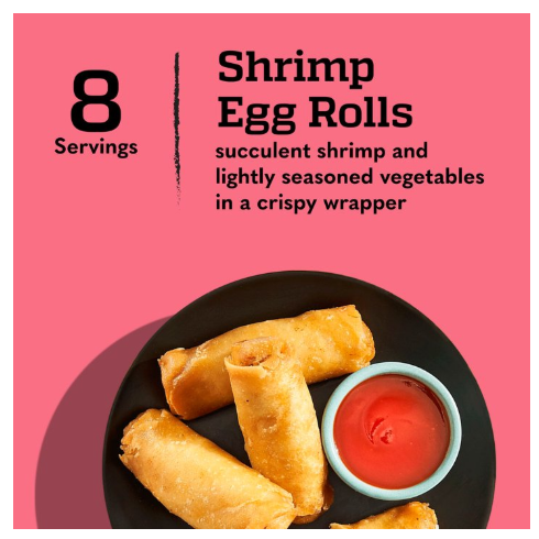FILLING: Cabbage, Carrots, Shrimp (Shrimp, Salt), Vermicelli (Water, Green Mung Beans), Contains Less Than 2% of: Modified Food Starch, Textured Soy Protein Concentrate, Garlic Powder, Yeast Extract, Paprika (Color), Spices, Sugar, Salt.WRAPPER: Enriched Wheat Flour (Wheat Flour, Niacin, Reduced Iron, Thiamine Mononitrate, Riboflavin, Folic Acid), Contains Less Than 2% of: Water, Modified Food Starch, Sugar, Canola Oil, Salt. Prefried in Vegetable Oil (Soybean and/or Canola Oil). CONTAINS: SHELLFISH (Shrimp), WHEAT, SOYSAUCE: Water, Sugar, Tomato Paste, Rice Vinegar, Corn Starch, Soy Sauce (Water, Soybeans, Wheat, and Salt), Salt, Citric Acid, Xanthan Gum, Vegetable Juice (Color) and Extractives Of Paprika, Annatto Extract, Natural Flavors. CONTAINS: WHEAT, SOY