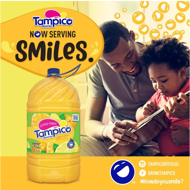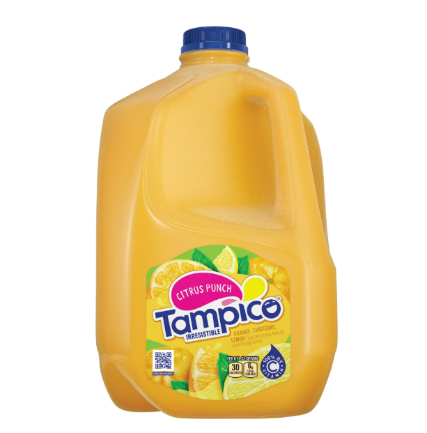 Orange, tangerine, and lemon flavors, what will Tampico think up next? This delicious juice drink whips up an imaginative blend of fruit flavors in every sip. Providing 100% daily value of vitamin C per serving, Tampico Citrus Punch delights your taste buds with our trademark irresistible flavor. Whether as an addition to morning breakfast or as an afternoon snack, a gallon of Tampico in the fridge will keep everyone satisfied. At only 30 calories and 6 grams of sugar per serving, Tampico Citrus Punch delivers on flavor! With Tampico, every moment starts with a sip and ends with a smile. From our classic punches, to our zero sugar varieties, and even to our fruit and veggie juice drink blends, Tampico has something delicious for everyone!