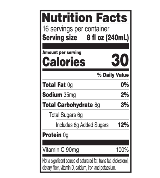 WATER; HIGH FRUCTOSE CORN SYRUP; CITRIC ACID; CORN OIL; FOOD STARCH-MODIFIED; POTASSIUM CITRATE; XANTHAN GUM; ASCORBIC ACID (VITAMIN C); LIME JUICE FROM CONCENTRATE; SODIUM CITRATE; POTASSIUM SORBATE (PRESERVATIVE); MALIC ACID; NATURAL AND ARTIFICIAL FLAVORS;ORANGE JUICE FROM CONCENTRATE; SUCRALOSE (ARTIFICIAL SWEETENER); ACESULFAME POTASSIUM (ARTIFICIAL SWEETENER); FD&C YELLOW 5; EDTA (TO PRESERVE FRESHNESS); TANGERINE JUICE FROM CONCENTRATE; FD&C YELLOW 6; LEMON JUICE FROM CONCENTRATE; NEOTAME (ARTIFICIAL SWEETENER).