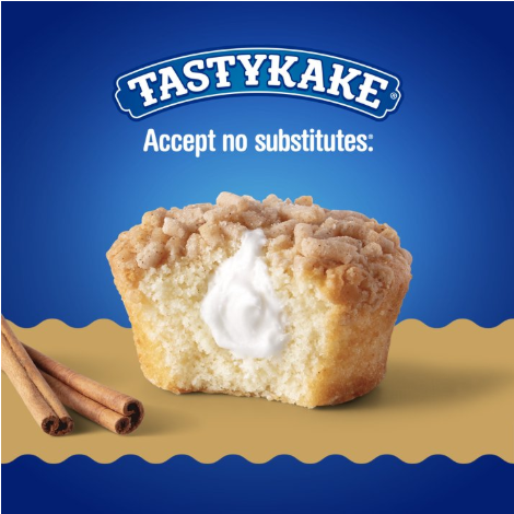 Indulge in a deeply satisfying creme-filled yellow cake cupcake topped with just the right amount of cinnamon crumb topping. Perfect snack for packing with lunch or as yummy late night snack. Tastykake has baked iconic treats for over 100 years, creating tasty cakes, muffins, donuts, pastries, pies and more. With so many delicious and unique treats to choose from and so many happy snack-lovers, why would you ever choose another brand? Whether it is a quick bite on-the-go or a reward after a long day, at Tastykake, we take snacking seriously, and our products are here to satisfy. Choose Tastykake and accept no substitutes™.