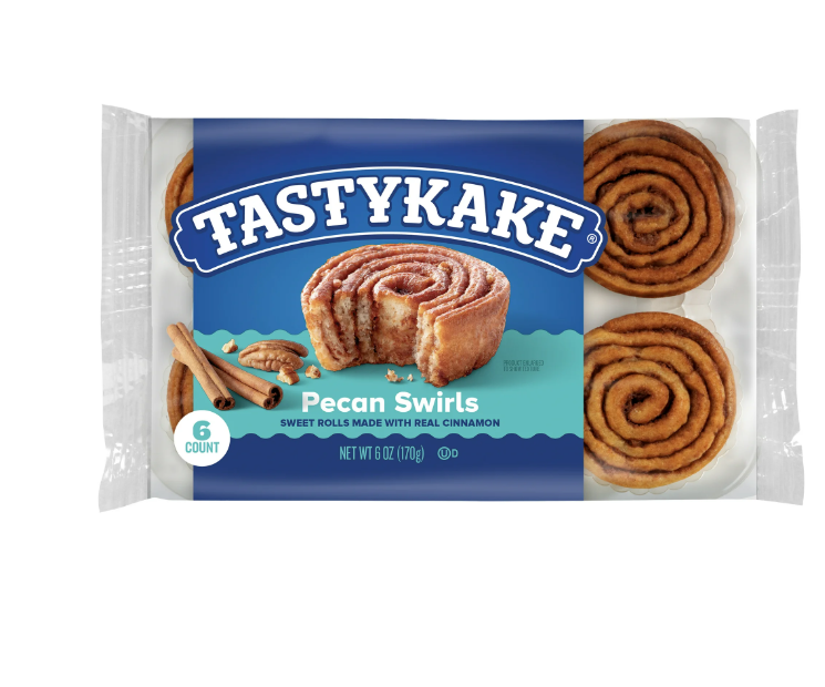 You'll get a package of six Tastykake Pecan Swirls.