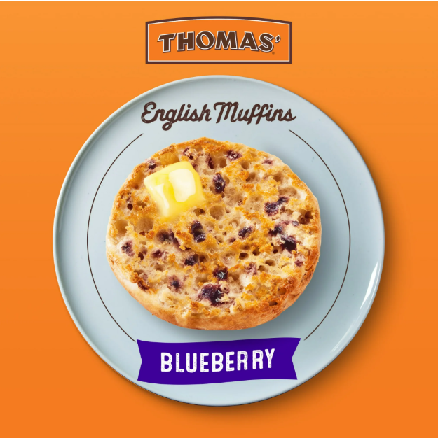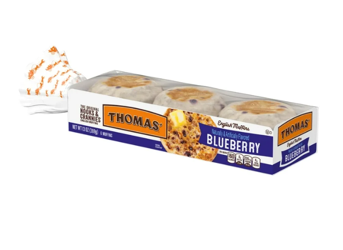 One 13 oz package of 6 Thomas’ Blueberry English Muffins