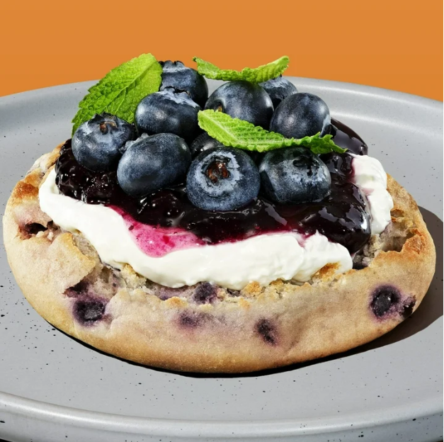Toast a Blueberry English Muffin and top with butter and fruit spread or stuff with fruit and cream cheese for a dessert taco