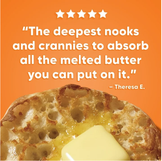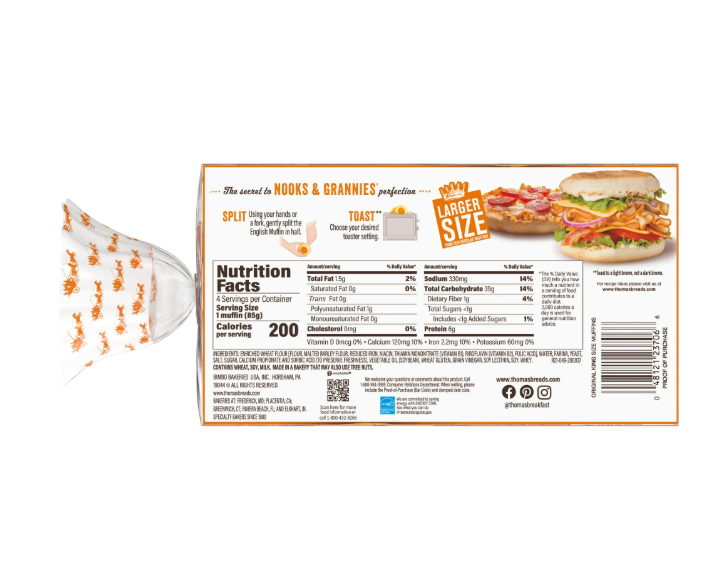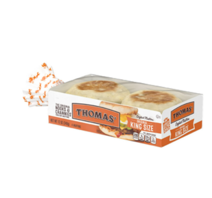 Thomas’ King Size English Muffins have your favorite Nooks and Crannies texture that toasts up crunchy on the outside and soft on the inside. Get creative with our larger sized English muffins. They are great any time of the day: perfect for breakfast lightly toasted with butter and a side of scrambled or sunny side up eggs, makes for a great openfaced sandwich for lunch, and is the perfect pairing to create the ultimate meat or veggie burger for dinner. Try it today and be part of a tradition of quality that Thomas’ has been proudly serving up to families like yours for more than 135 years.