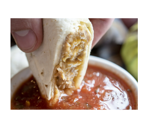 Cheddar cheese and tasty pinto bean filling stuffed in a fresh baked tortilla