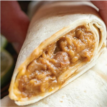 Hearty ground beef, pinto beans and crushed red pepper filling stuffed in a fresh baked tortilla