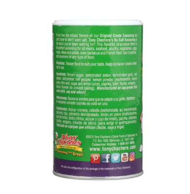 If you love the robust flavors of Tony Chachere’s Original Cajun/Creole Seasoning but can’t have or don’t want salt (or any sodium substitutes), our new No Salt Seasoning Blend is the one you’ve been waiting for! This flavorful all-purpose blend is the perfect seasoning for all meats, seafood, poultry, vegetables, eggs, soups, stews and salads, even BBQ and French fries! A great rub prior to smoking or grilling. Use anywhere and anytime on any type of food. Tony Chachere’s makes everything taste great!