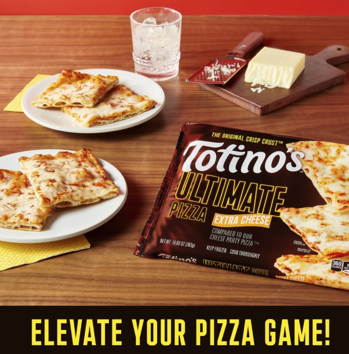 - CONTAINS: One 10.69 oz Totino's Extra Cheese Ultimate Pizza; Two servings per container