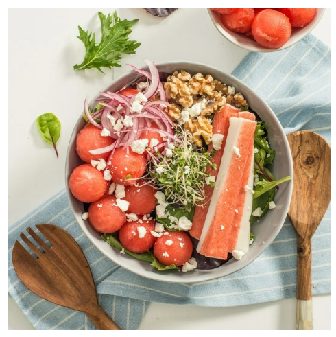Fish Protein (Alaska Pollock and/or Pacific Whiting), Water, Pea Starch, Egg Whites,Sugar, Potato Starch, Modified Tapioca Starch, Contains 2% Or Less Of:Beni-Zuwai Crab Meat,Natural And Artificial Flavor (Extracts Of Blue Crab, Snow Crab, Lobster, and Alaska Pollock), Rice Wine (Water, Rice, Koji), Sea Salt, Sorbitol, Carrageenan, Yam Flour, Potassium Chloride, Disodium Inosinate, Sodium Pyrophosphate, Carmine, Paprika, Color Added.