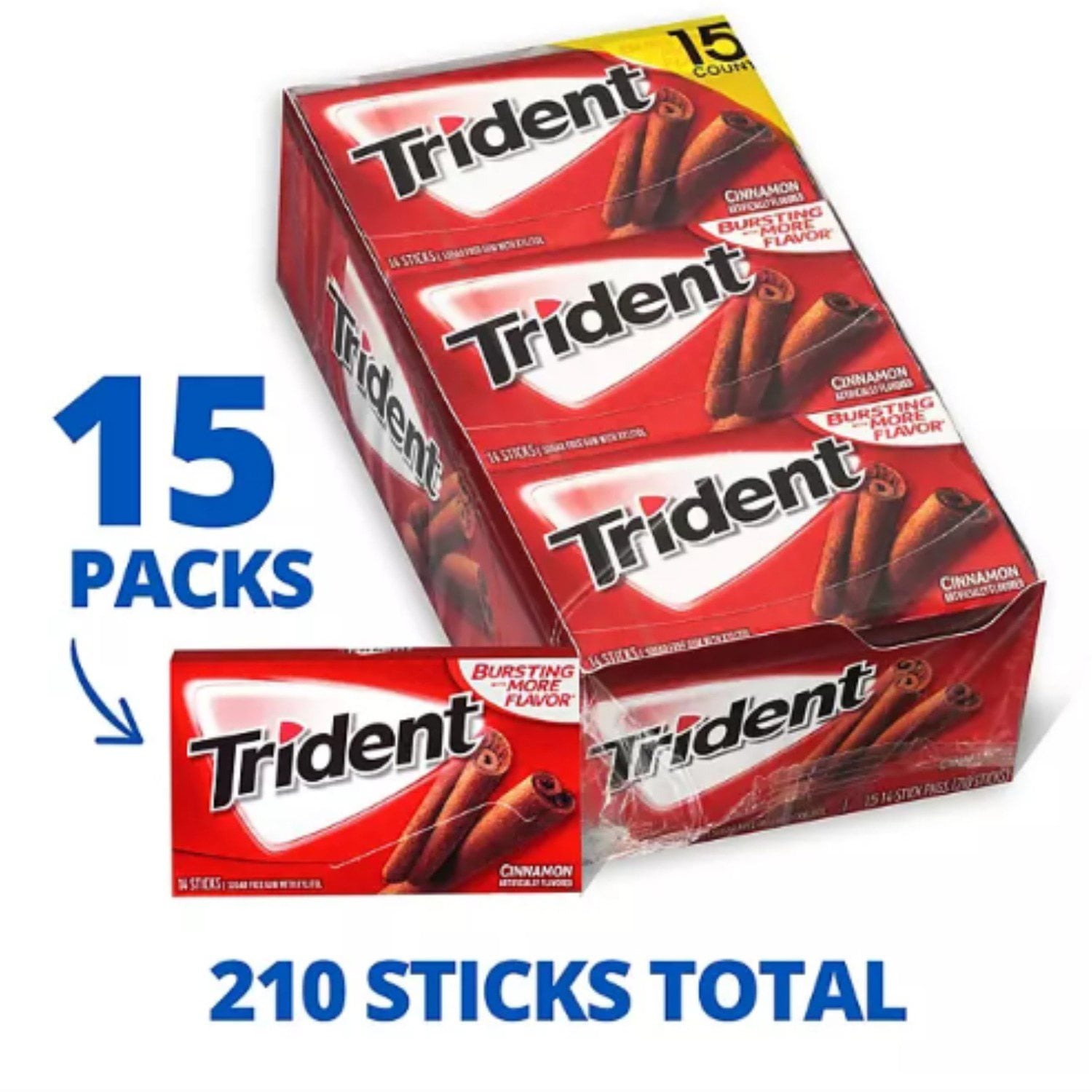 Trident Cinnamon Sugar Free Gum, 14 pieces, 15 pk.
