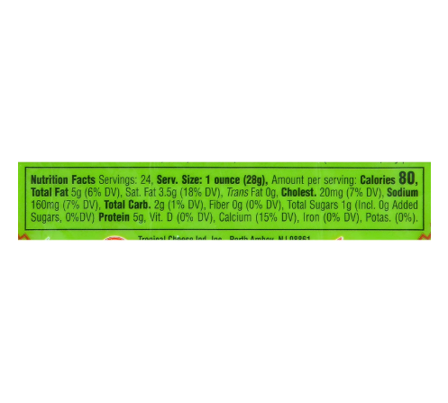 Ingredients: pasteurized milk, salt, enzymes, cheese cultures (lactic stared, soy protein)