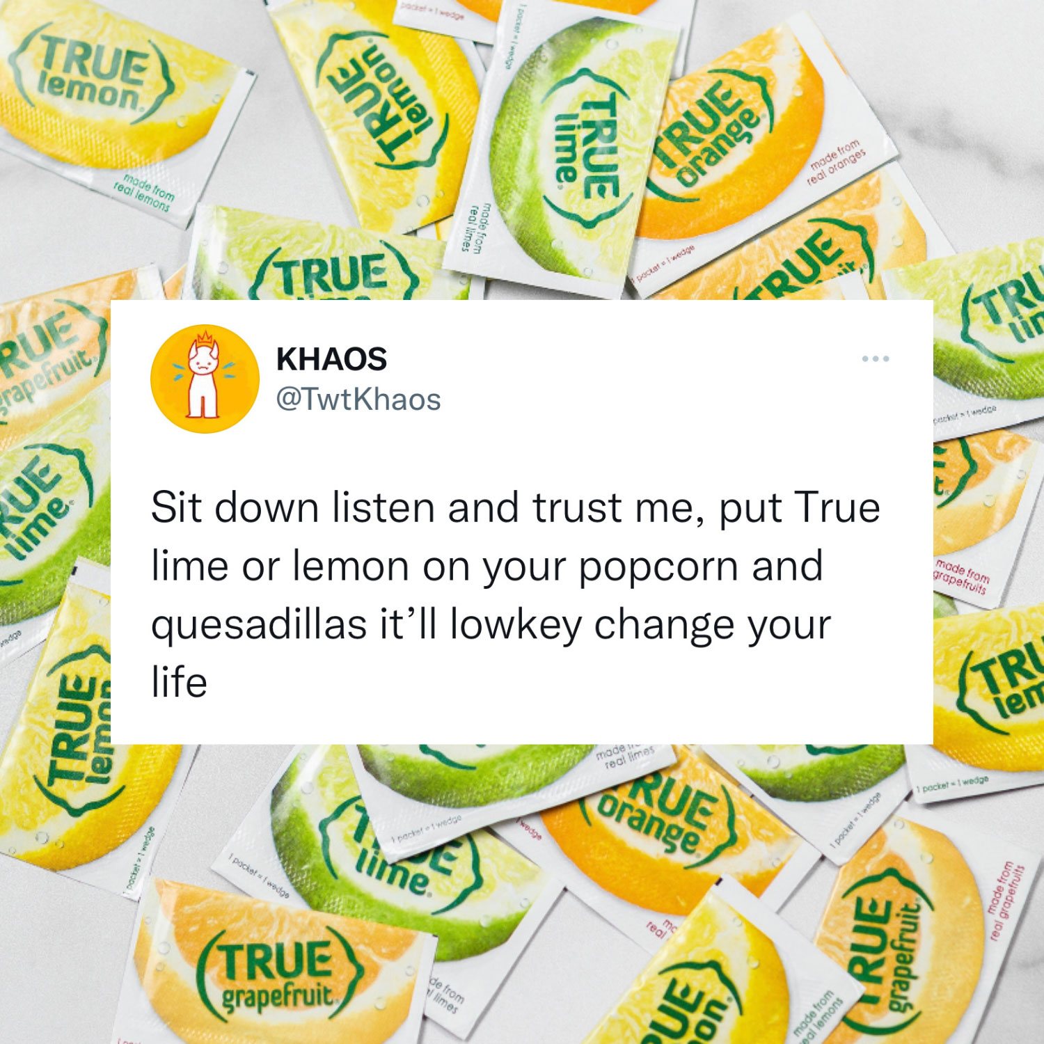 True Lime is the perfect solution for those who love the taste of fresh-squeezed lime. It's a unique product that brings the real flavor of lime to your fingertips, wherever you go. Made from a patented process that cold-presses and crystallizes lime oils and juice, True Lime delivers an authentic fresh-squeezed lime taste in a convenient packet.