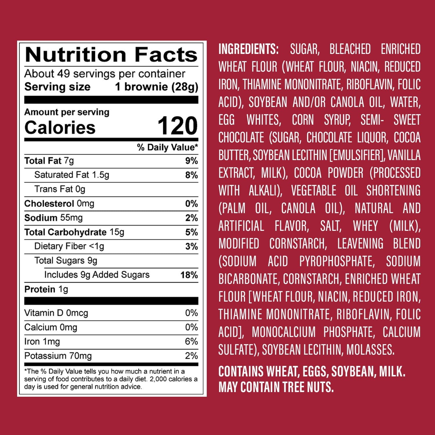Treat your taste buds to two-bite brownies® made with real chocolate, 48 pieces, a moist and fudgychocolate dessert located in the snack section. An alternative to chocolate cakes, thesedelicious chocolate brownie bites are made with real chocolate for a rich and fudgy taste.