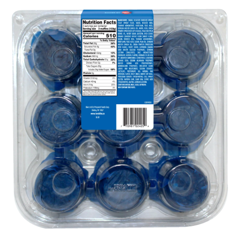 Convenient 13 oz clamshell with 9 snack-size muffins