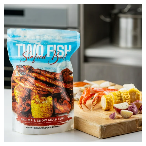Indulge in the flavors of the coast with the Two Fish Seafood Boil (Crab and Shrimp). This convenient boil package is designed to bring the taste of a restaurant-quality seafood boil straight to your kitchen. With a combination of succulent shrimp and tender snow crab legs, complemented by corn, potatoes, and our signature cajun butter sauce, this meal is a delight for seafood lovers. Ready in less than 10 minutes, the Two Fish Seafood Boil is perfect for a quick dinner, a special occasion, or a family gathering. The generous 1lb portion of seafood ensures everyone gets a satisfying taste, while the easy preparation makes it a go-to choice for a hassle-free, gourmet meal at home. Enjoy the rich, savory flavors and the convenience of a ready-to-cook meal that brings the restaurant experience to your table.