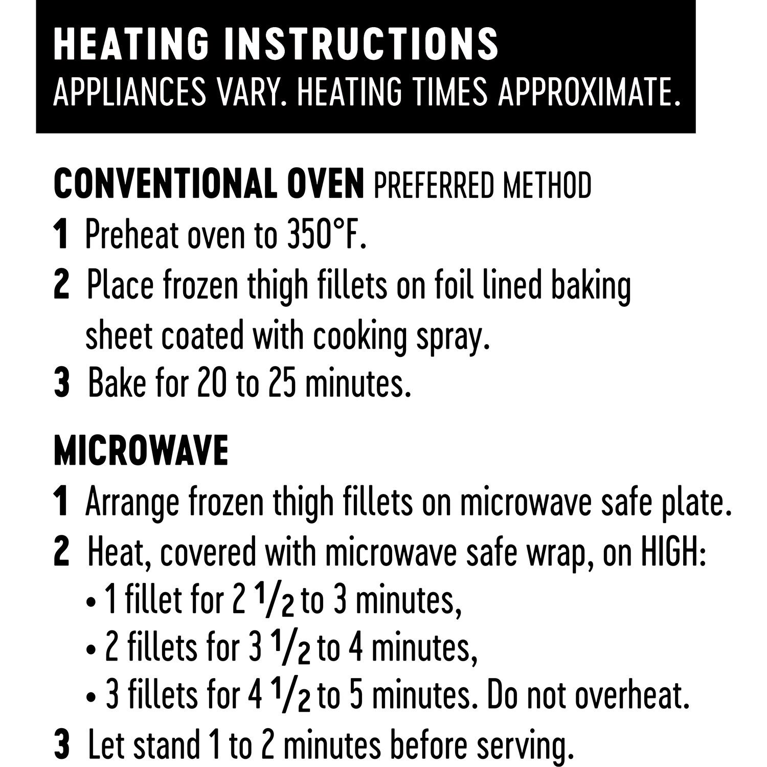 Our grilled sweet teriyaki flavored chicken fillets are easy to prepare. Simply heat them in a conventional oven (preferred method) or microwave. Ensure internal temp reaches 165°F.