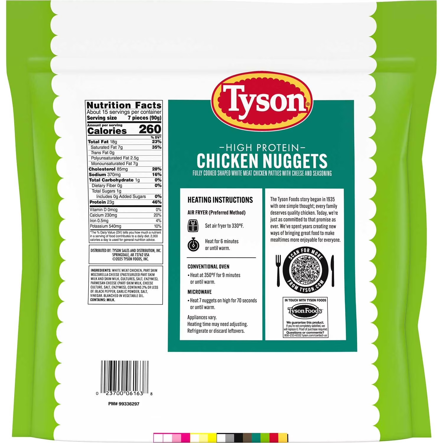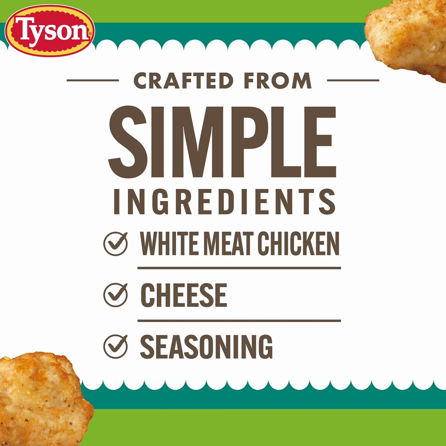 Introducing Tyson Simple Ingredient Chicken Nuggets, Frozen, 3 lbs.—a delicious and clean twist on the minimal ingredient nugget trend. Crafted with just 100% all-natural* white meat chicken, cheese, and pantry staples like garlic, pepper, and salt, these nuggets deliver bold flavor you can feel good about enjoying. Each serving packs an impressive 23g of protein, making these nuggets a perfect choice for those seeking a protein-rich option. With only 1g of carbs, they fit seamlessly into keto, low-carb, or high-protein lifestyles. These nuggets are ready to cook in your air fryer, oven, or microwave, offering flexibility for busy schedules. Elevate your meals with this protein powerhouse from Tyson—simple ingredients, serious gains