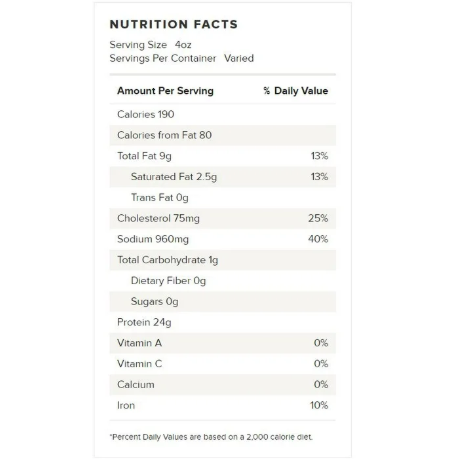 Cured With: Water, Salt, Sodium Phosphate, Sodium Erythorbate, Sodium Nitrite