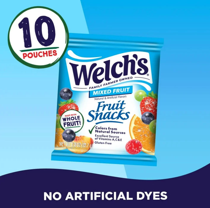 Welch's Fruit Snacks Gluten-Free Mixed Fruit Soft Fruit Snacks for School, .8 oz, 10 Count