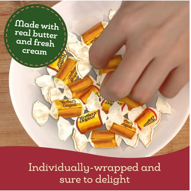 Capture the flavors of fall with delicious Werther's Original Caramel Apple Soft Caramels. Werther's Original Soft Caramel Candy delivers classic Caramel flavor in our softest texture yet. Made with real butter and fresh cream, for a one of a kind taste. Storck Usa L.P. Shellfish-Free. Made with real butter and fresh cream, for a smooth taste that is one of a kind. Individually wrapped caramels perfect for sharing...or not. Fill candy dishes at home or in the office break room or gift to family and friends