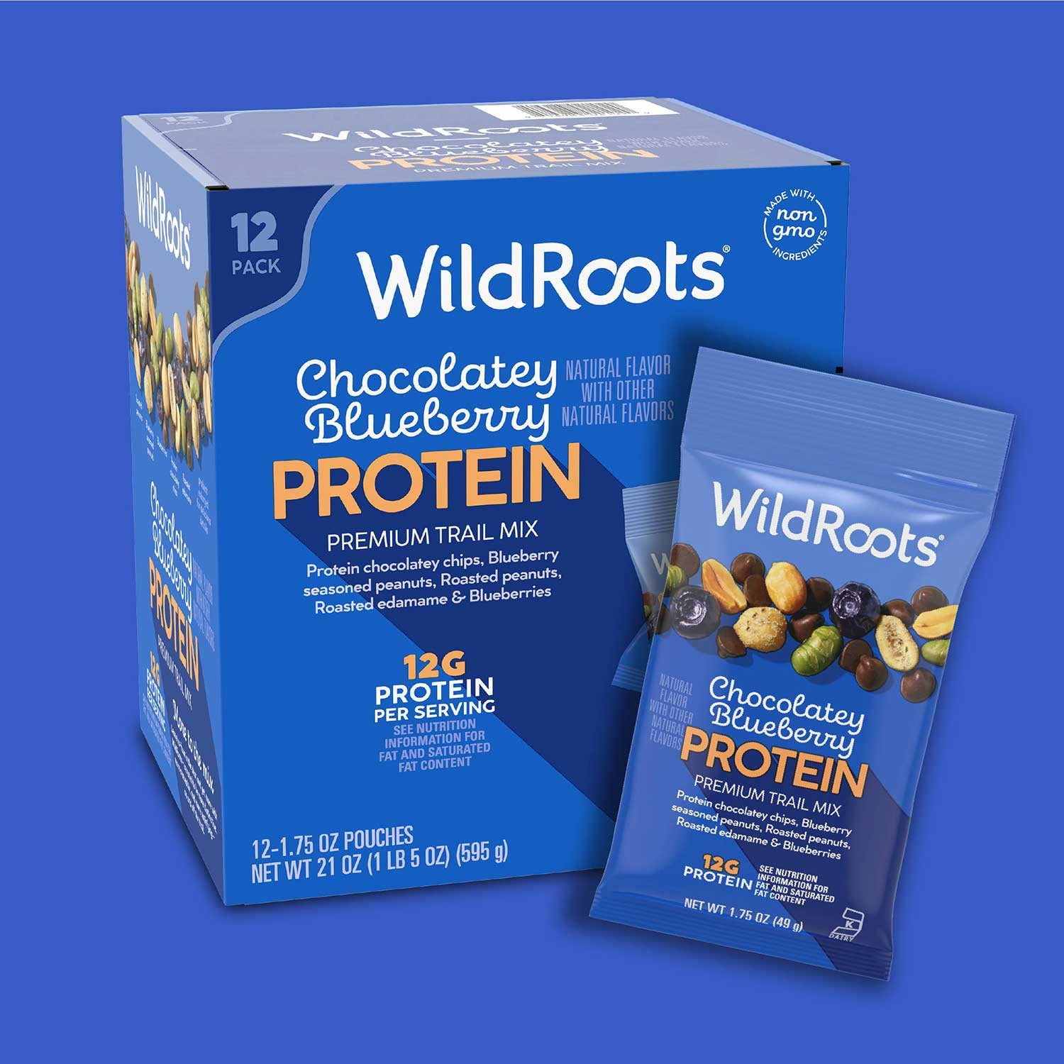 Each carton contains 12 individual 1.75-oz pouches, each delivering 12g of protein per serving. These single-serve pouches are ideal for a quick boost anytime you need a satisfying snack. Whether you're starting your day or need a midday pick-me-up, WildRoots® Chocolatey Blueberry Protein Trail Mix is a snack you'll enjoy sharing—or keeping all to yourself.