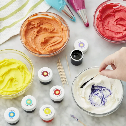 - Buttercream frosting can also be thickened (with powdered sugar) or thinned (with water) for spreading or piping cupcake swirls; easy to color using gel icing colors