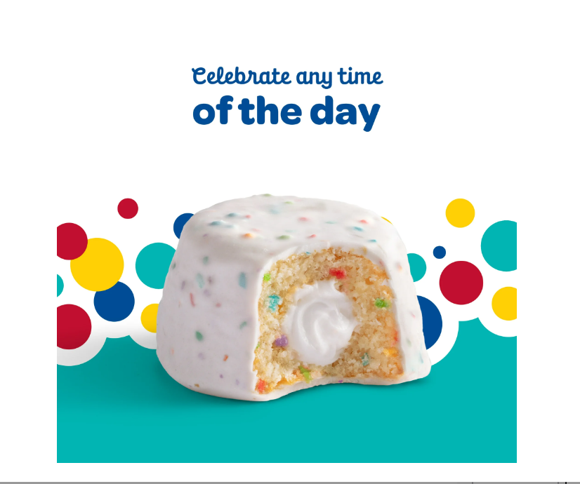 SUGAR, BLEACHED AND UNBLEACHED ENRICHED FLOUR (WHEAT FLOUR, MALTED BARLEY FLOUR, NIACIN, REDUCED IRON, THIAMIN MONONITRATE, RIBOFLAVIN, FOLIC ACID), WATER, HYDROGENATED PALM KERNEL OIL, NONFAT MILK, VEGETABLE OIL (SOYBEAN OIL AND PALM OIL), EGGS, CANDY SPRINKLES (HYDROXYPROPYL METHYLCELLULOSE, RED 3, RED 40, YELLOW 5, BLUE 1, YELLOW 6, GUM ARABIC, SUGAR, WHEAT FLOUR, CANOLA OIL, WHEAT STARCH, RED 40 LAKE, BLUE 2 LAKE, YELLOW 5 LAKE, YELLOW 6 LAKE, BLUE 1 LAKE), CORN SYRUP, HIGH FRUCTOSE CORN SYRUP, CONTAINS 2% OR LESS OF EACH OF THE FOLLOWING: GLYCERINE, DEXTROSE, LEAVENING (SODIUM ACID PYROPHOSPHATE, BAKING SODA, MONOCALCIUM PHOSPHATE), MODIFIED CORN STARCH, MONO- AND DIGLYCERIDES, SALT, CORN STARCH, CORN FLOUR, TITANIUM DIOXIDE (COLOR), SODIUM STEAROYL LACTYLATE, SOY LECITHIN, XANTHAN GUM, NATURAL AND ARTIFICIAL FLAVORS, POLYSORBATE 60, SORBITAN MONOSTEARATE, DATEM, POTATO STARCH, MONOGLYCERIDES, WHEAT FLOUR, CITRIC ACID, TRICALCIUM PHOSPHATE, ENZYMES, WHEAT STARCH, CELLULOSE GUM, WHEAT GLUTEN, PROPYLENE GLYCOL MONOESTER, ASCORBIC ACID, SODIUM ALGINATE, PRESERVED WITH POTASSIUM SORBATE AND SORBIC ACID.
