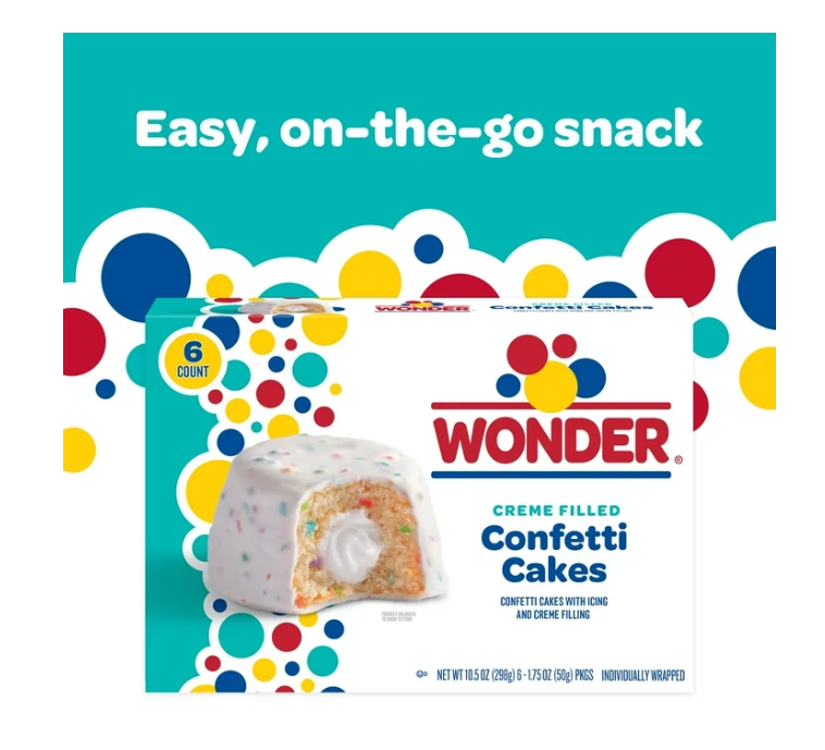 Wonder® Creme Filled Confetti Cakes are here to delight your tastebuds and create a snack time celebration any time of day. Featuring a sweet and fluffy confetti birthday cake with a creme filling, and covered in a sweet flavored icing, these snack cakes are perfect for celebrations big or small. Whether you prefer them for a dessert, an afternoon pick-me-up or a late night treat, these family-approved sweet treats are sure to provide you all the wonder you know and love. Made with Real Wonder. For over 100 years, the makers of Wonder Bread have been baking up that special taste that reminds us of our childhood and proves, time and time again, that the simple pleasures really are the best. Makes you Wonder what sweet memories the next 100 years will bring.