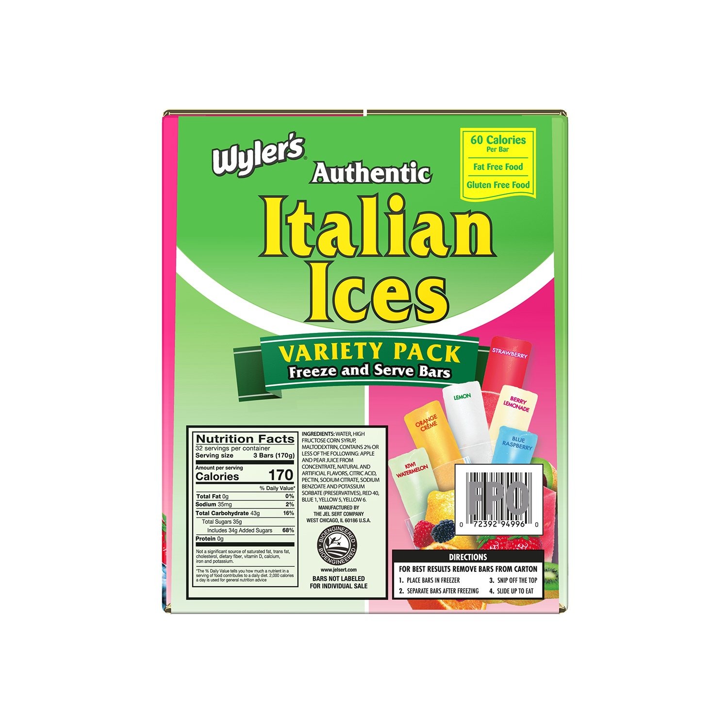 Each serving of Wyler's Authentic Italian Ices contains only 60 calories, making it a guilt-free indulgence. Enjoy the refreshing taste without worrying about your calorie intake.