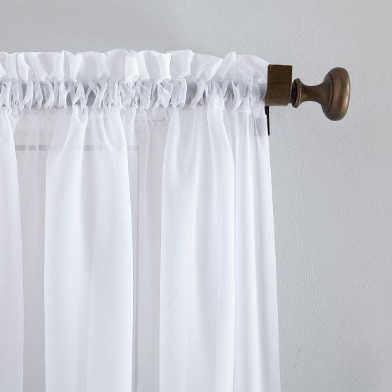 (2 pack) Mainstays Marjorie 1-Piece Sheer Voile Rod Pocket Curtain Panel, 59"x84", White