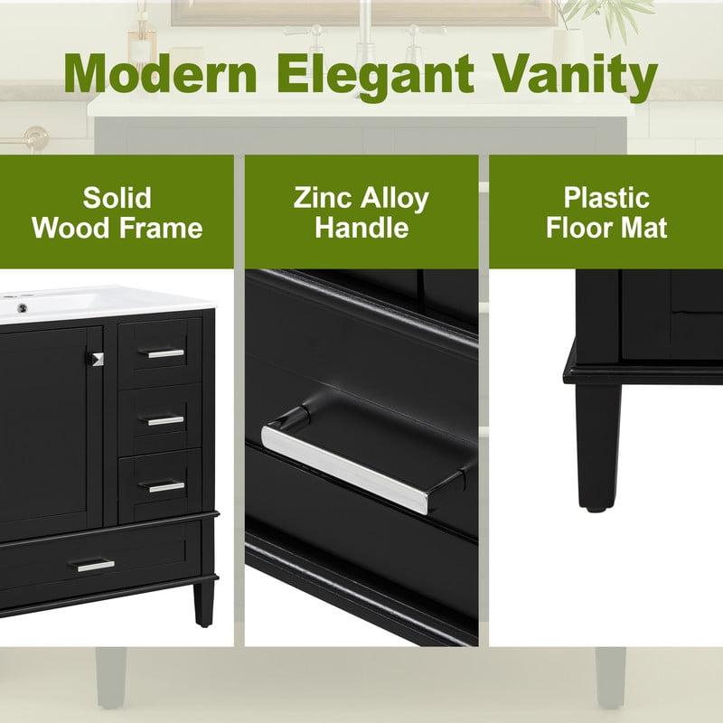 Mirightone 30 Inch Bathroom Vanity with Sink, 30" Vanities with Ceramic Sink, Single Sink Bathoom Vanity with Drawers, Cabinet and Door Shelves (Black)