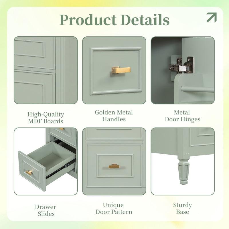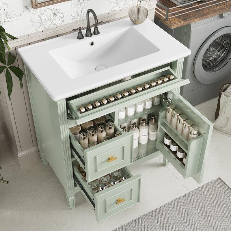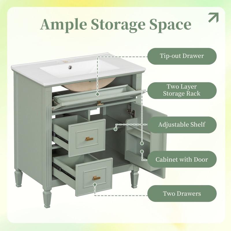 30" Bathroom Vanity with Sink, 30 in Vanities with Ceramic Sink, Single Sink Bathroom Vanity with 1 Flip Drawer, 2 Drawers & Adjustable Shelf (Light Green)
