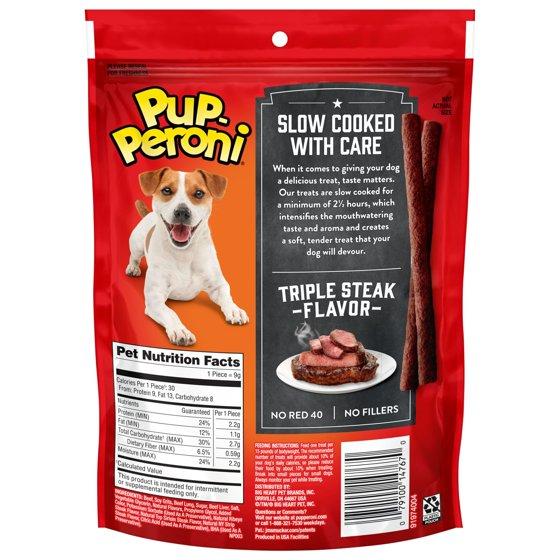 - Contains one (1) 5.6 oz. bag of Pup-Peroni Triple Steak Flavor soft dog treats made with real steak
