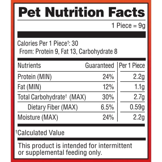 Beef, Meat By-products, Soy Grits, Sugar, Liver, Salt, Angus Steak, Propylene Glycol, Garlic Powder, Ribeye Steak, Top Sirloin Steak, Ny Strip Steak, Potassium Sorbate (used As A Preservative), Caramel Color, Added Color, Natural Smoke Flavor, Onion Extract, Bha (used As A Preservative)