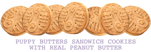 (4 pack) Three Dog Bakery Puppy Butters, Crunchy Peanut Butter Dog Sandwich Cookies, 11.8 oz