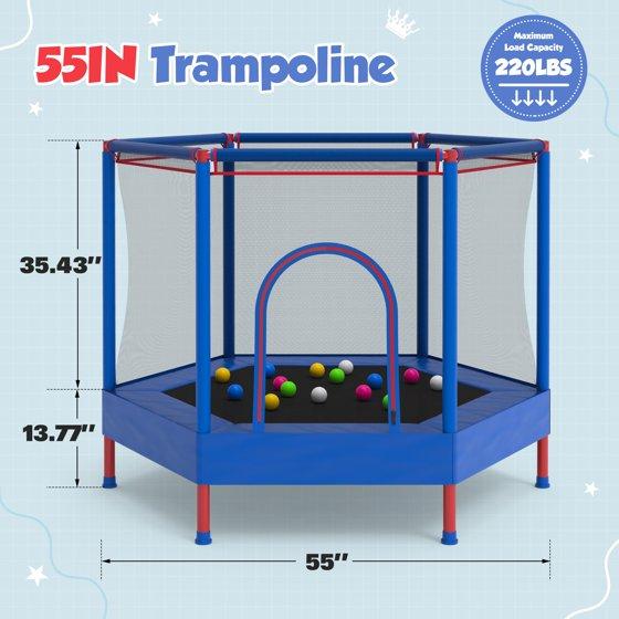 55" Hexagonal Toddler Trampoline for Kids, SHINPT Mini Trampoline with Enclosure Net, 55in Outdoor Trampoline for Backyard, Indoor Kids Trampoline for Basement, Gameroom, Small Trampoline for Gift