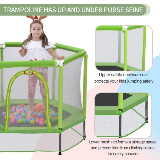 55 in Kids Trampoline for Toddlers, SHINPT Small Trampoline for Kids, 55" Mini Trampoline for Kids with Safety Enclosure Net and Balls, Toddler Trampoline Indoor/Outdoor for Boys and Girls for Gift