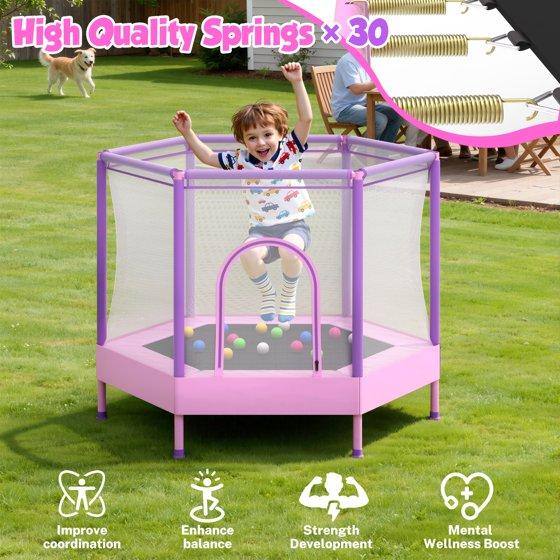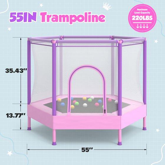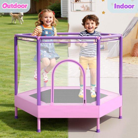 55" Hexagonal Toddler Trampoline for Kids, SHINPT Mini Trampoline with Enclosure Net, 55in Outdoor Trampoline for Backyard, Indoor Kids Trampoline for Basement, Gameroom, Small Trampoline for Gift