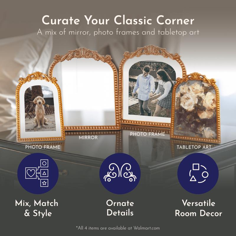 9.75" x 12" Gold Filigree Arch Tabletop Mirror with Adjustable Stand