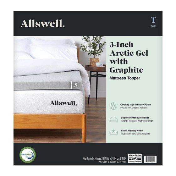 Allswell 3" Arctic Gel with Graphite Memory Foam Mattress Topper, Twin