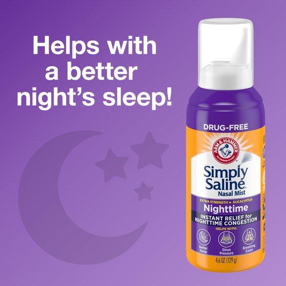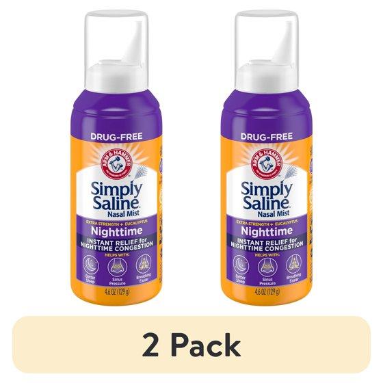 (2 pack) Arm & Hammer Simply Saline Nasal Mist Extra Strength, Nighttime Formula with Eucalyptus, 4.6OZ
