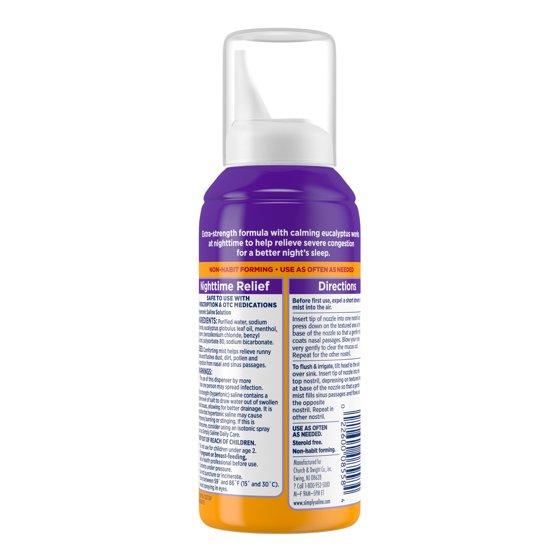 This nighttime nasal spray helps relieve cold and allergy congestion, and is made with soothing eucalyptus for better sleep. Simply Saline contains ARM HAMMER Baking Soda for a drug-free way to dry mucus, clear nasal passages, and reduce snoring, making it safe to use with your cold or allergy medicine. Plus, its adaptable nozzle and gentle mist make it easy to use. To breathe easier and sleep better, try ARM HAMMER Simply Saline Extra Strength- Nighttime Formula plus Eucalyptus.