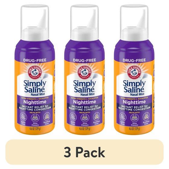 (3 pack) Arm & Hammer Simply Saline Nasal Mist Extra Strength, Nighttime Formula with Eucalyptus, 4.6OZ