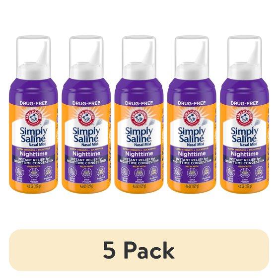 (5 pack) Arm & Hammer Simply Saline Nasal Mist Extra Strength, Nighttime Formula with Eucalyptus, 4.6OZ