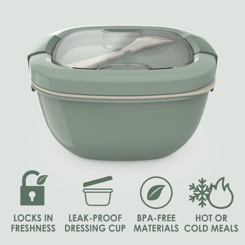 - • Adult Salad Container for Lunch: Take healthy salads and other nutritious meals on the go with this stackable, all-in-one set featuring a large 54 oz bowl, a 4-compartment bento tray for fixings, a leak-proof sauce container, and even a reusable fork!