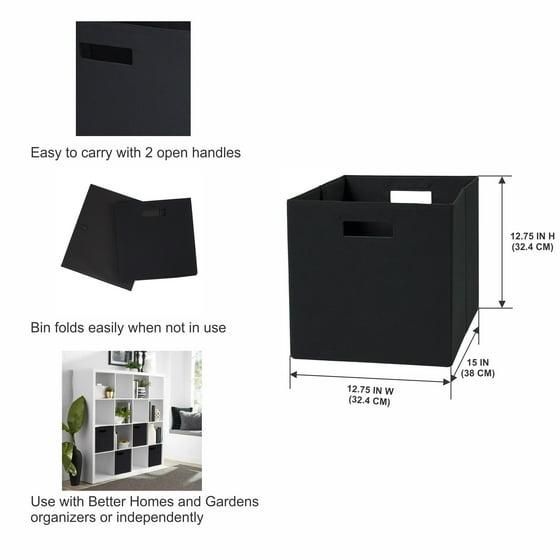 Better Homes & Gardens Collapsible Fabric Cube Storage Bin, Rich Black