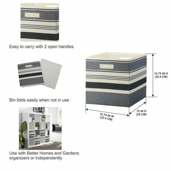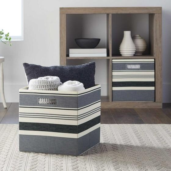 Better Homes & Gardens Collapsible Fabric Cube Storage Bin, Black Stripe